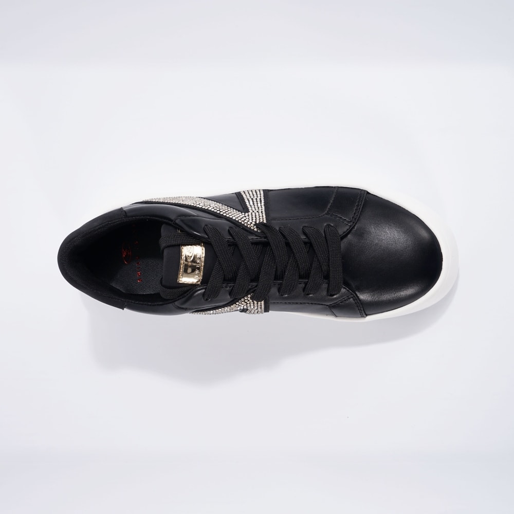 Black Leather Gold Rhinestones, label patch on the tongue.Bequeme Oberlinie: