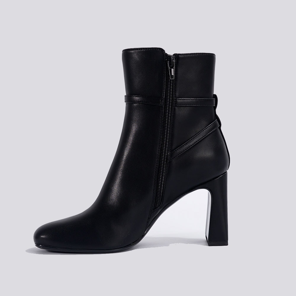 ポインテッドトゥの女性スタックレザーハイヒールブーツ