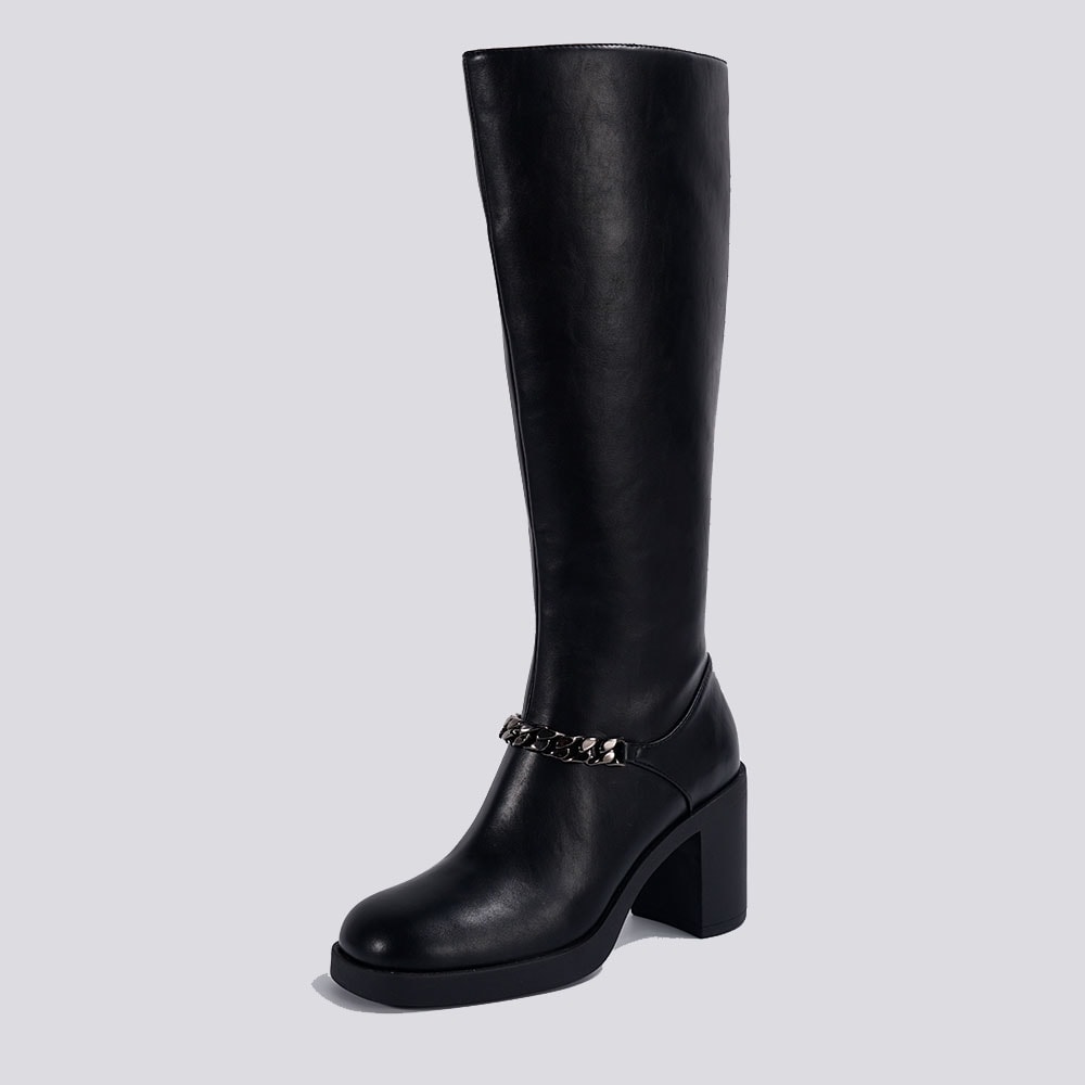 Side Zipper Squar Heel Round Toe Combat Boots For Women